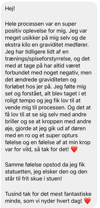 Du bliver hjulpet af et erfarent team af kvinder. Sammen har vi allerede skabt mange motherhood skulpturer
